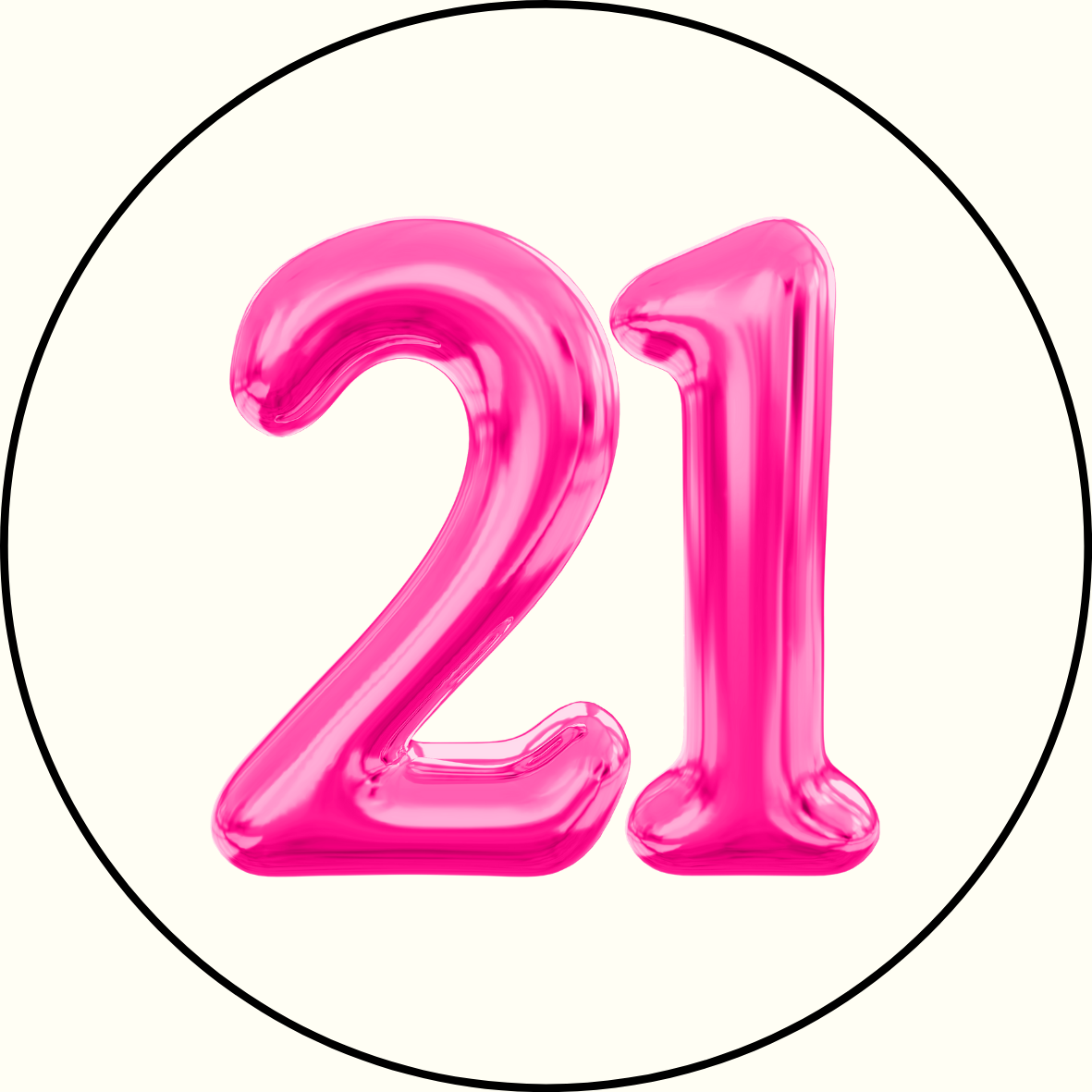 3" Matte Circle Vinyl Sticker that reads "21" in balloons.