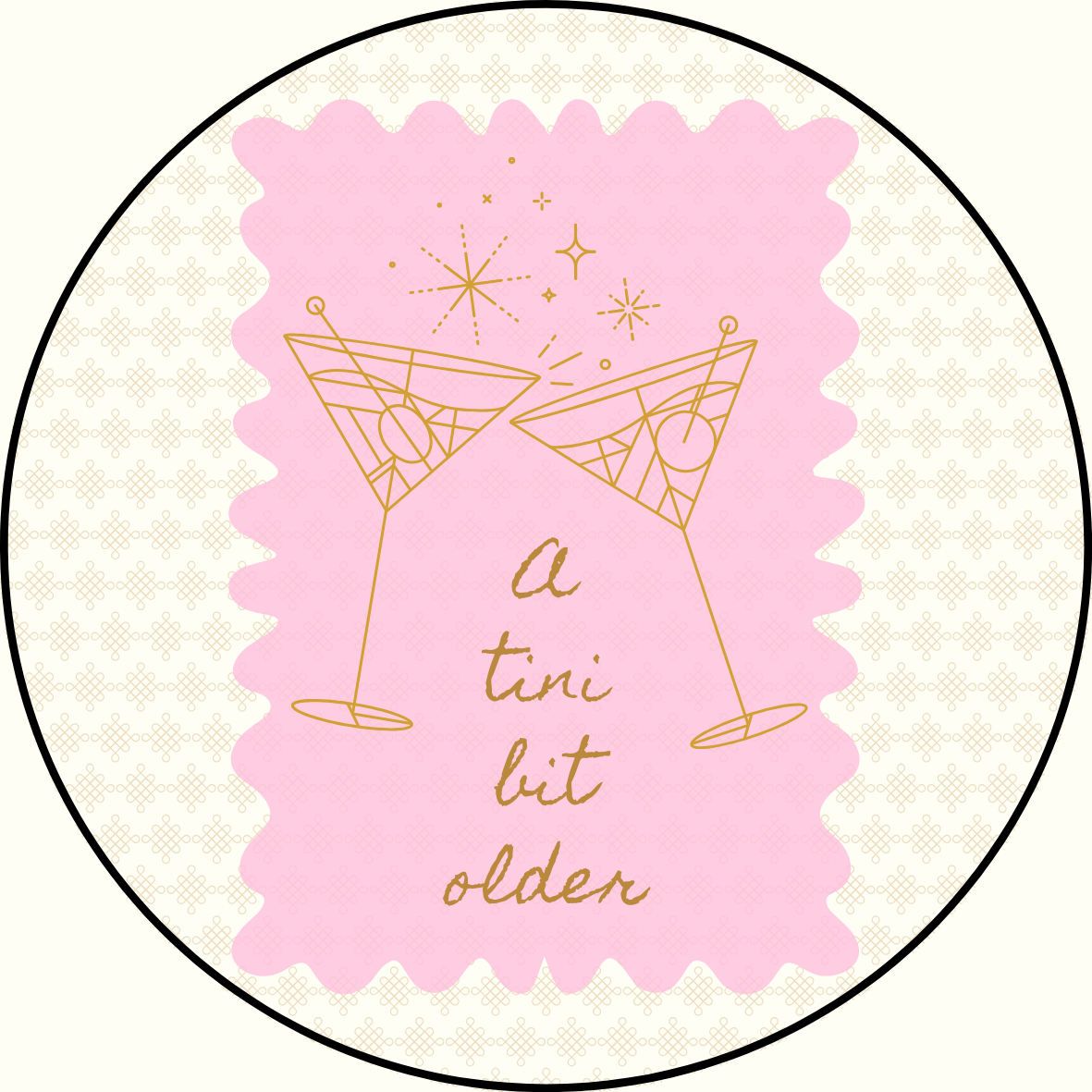 3" Button that reads "A Tini Bit Older" with clinking martini glasses.
