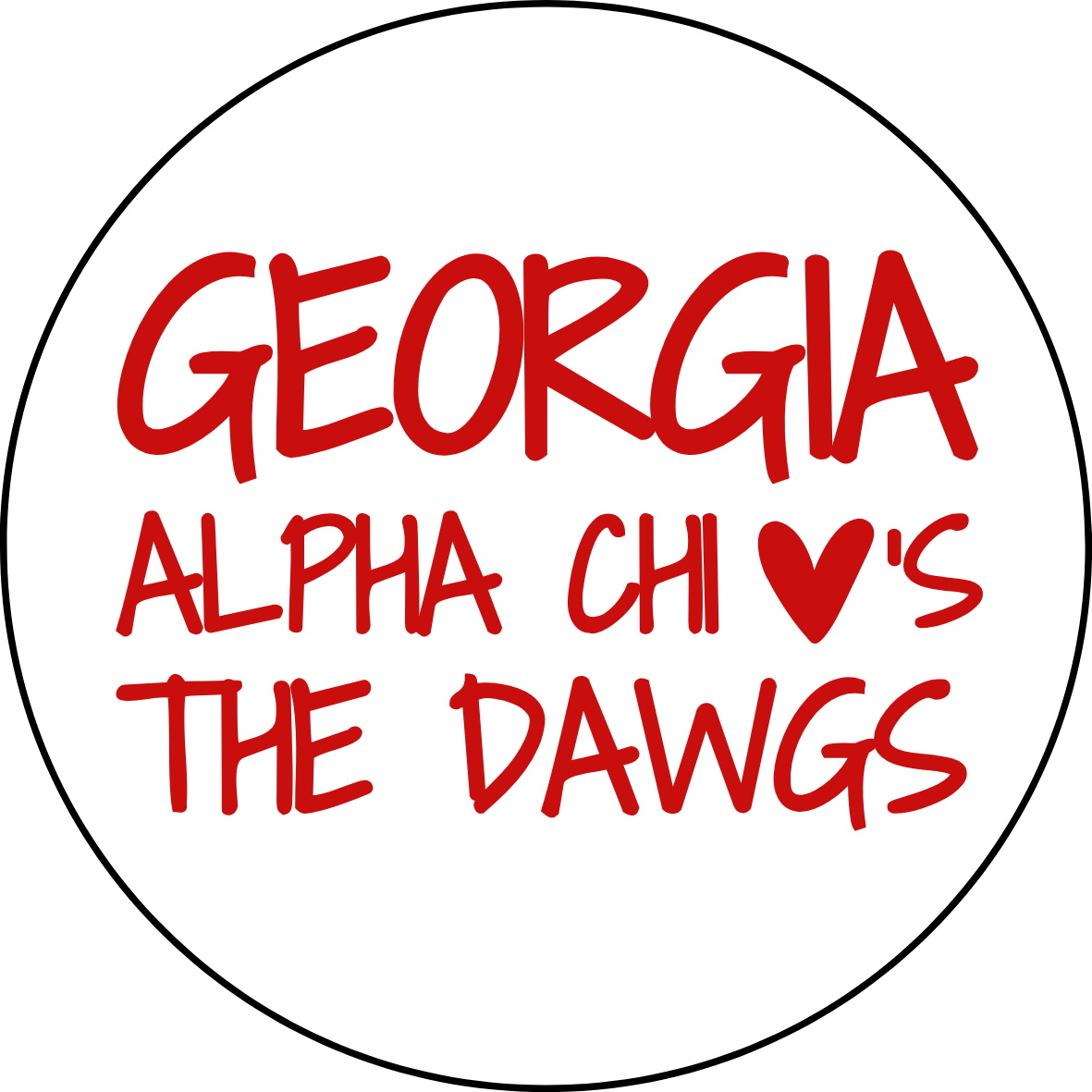 3" Button that reads "Georgia (sorority of your choice) Loves the Dawgs"