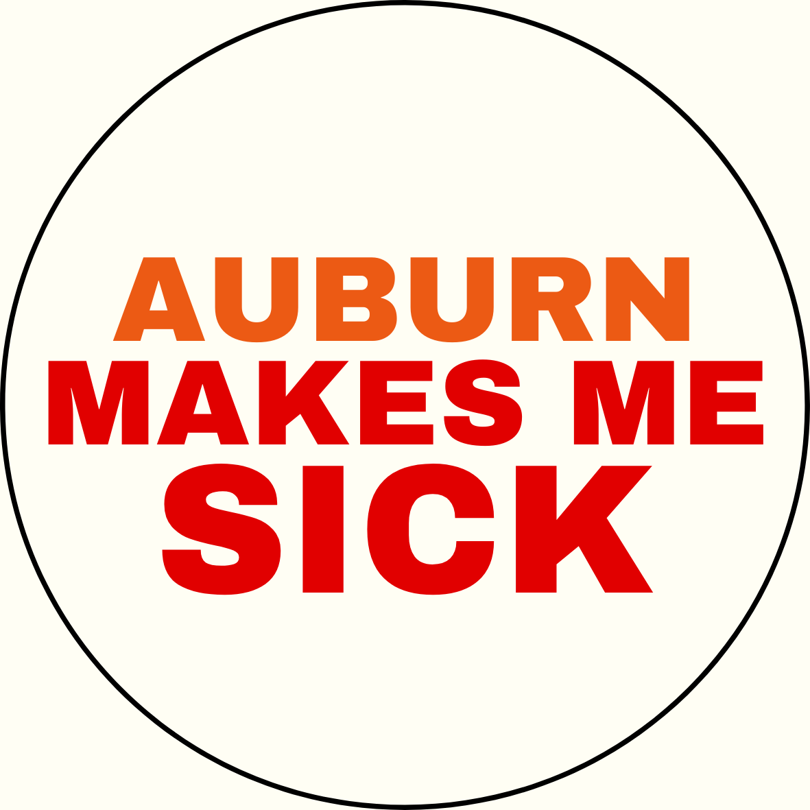 3" Matte Vinyl Sticker that reads "Auburn Makes Me Sick"
