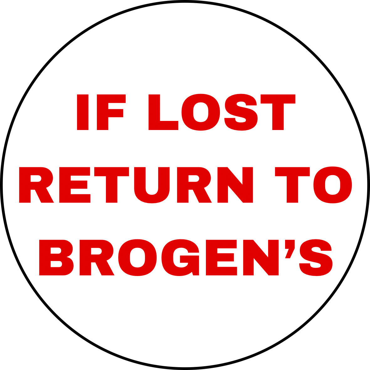 3" Matte vinyl stickers that reads “If Lost Return To Brogen’s.”