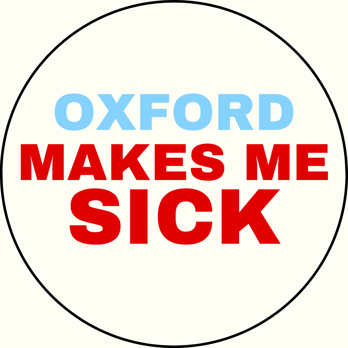 3" Matte Vinyl Sticker that reads "Oxford makes me sick"
