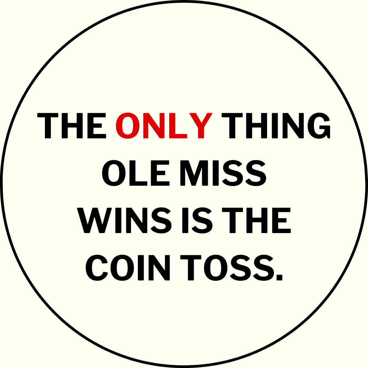 3" Matte Vinyl Sticker that reads "The only thing Ole Miss wins is the coin toss"