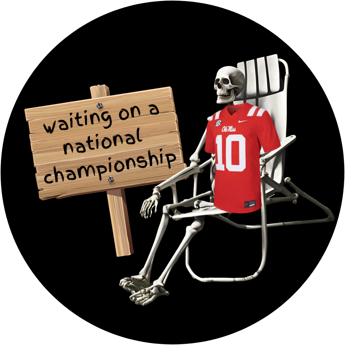 3" Matte Vinyl Sticker that reads "Waiting on a National Championship"