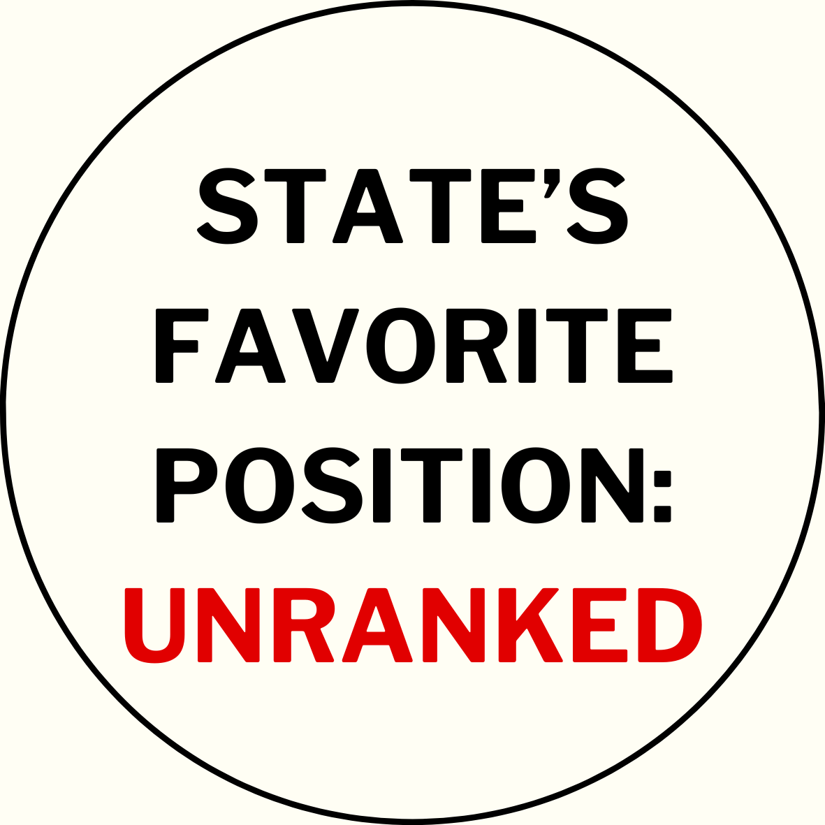 3" Matte Vinyl Sticker that reads "State's Favorite Position: Unranked."