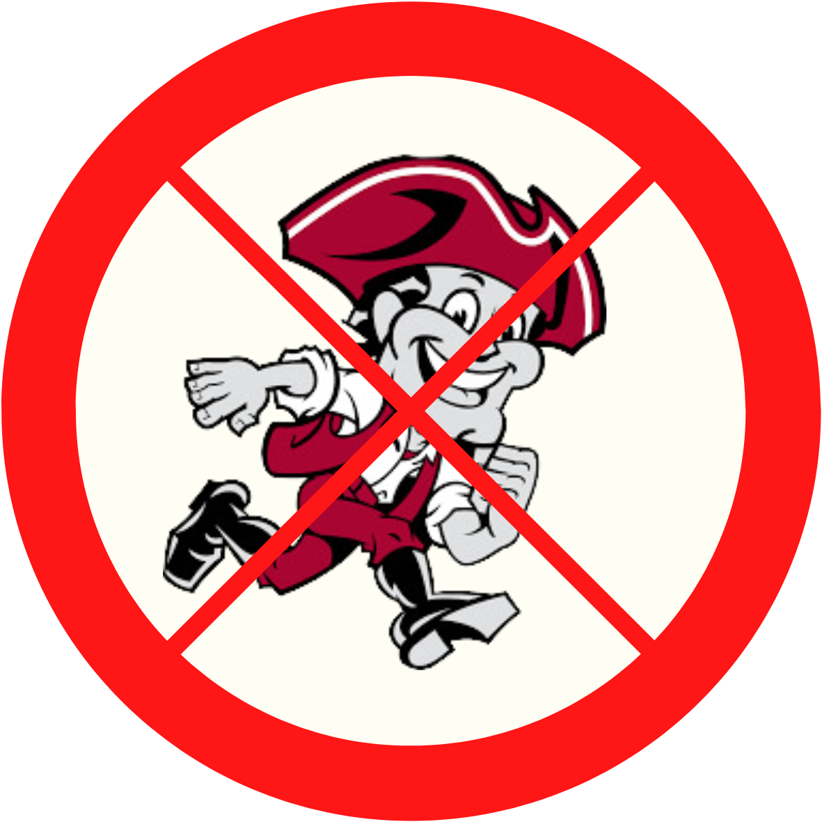 3" Matte vinyl circle sticker that features the UMass mascot and a red cross through.
